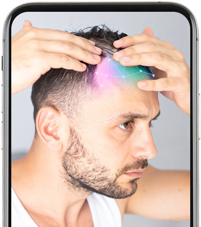 AI, along with your input from a brief questionnaire, is used to determine your hair loss stage based on the Norwood or Ludwig scale.